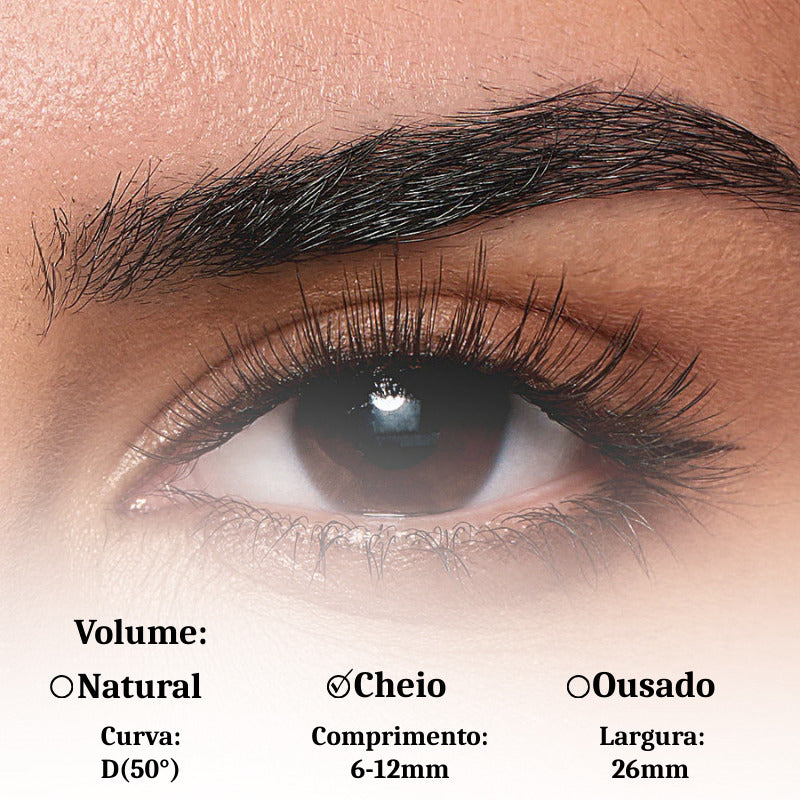 Nossos Cílios Magnéticos não precisam de cola. Eles se fixam graças às propriedades magnéticas dos cílios superiores e inferiores, garantindo uma aplicação segura e confortável.