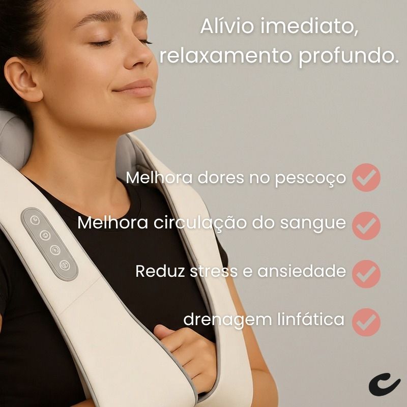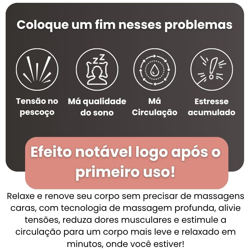 Alívio de tensão e dores: ideal para pescoço, ombros e costas, reduzindo desconfortos acumulados.